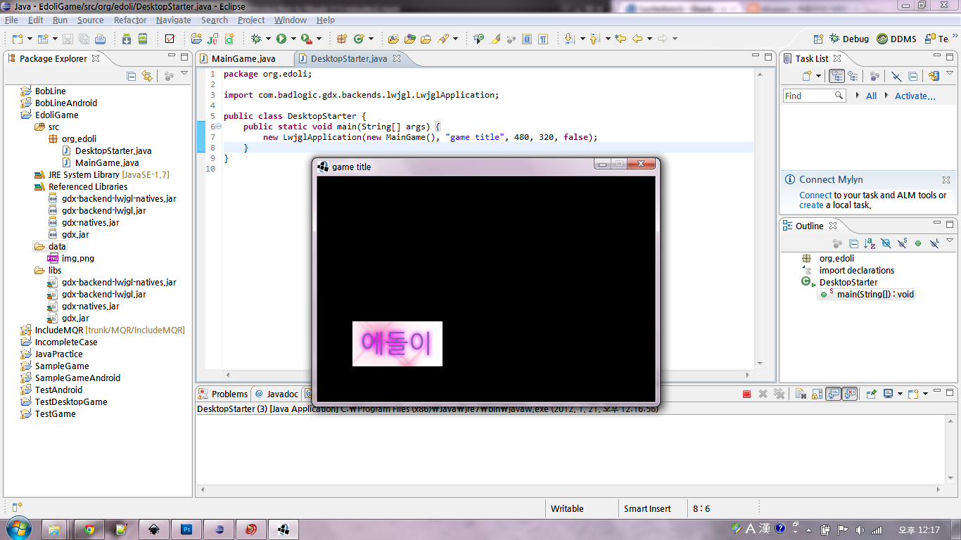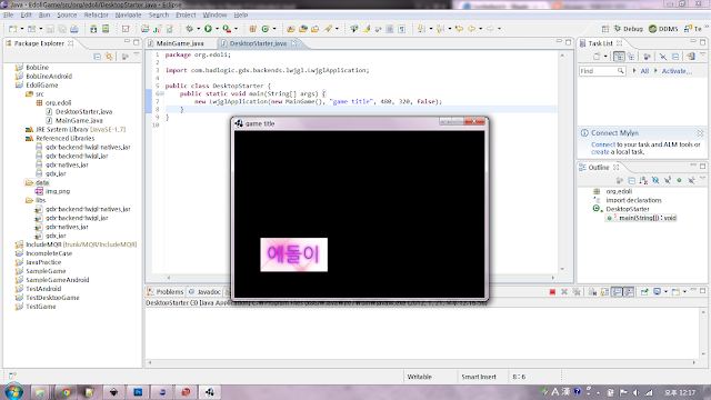 libGDX는 좀 독특하게 멀티플렛폼 프레임워크로, 데스크탑에서 게임을 실행할수 있고, 이 게임을 그대로 안드로이드에 적용할 수 있습니다. 먼저 데스크탑에서 이미지를 출력하는 것부터 시작하도록 하죠.