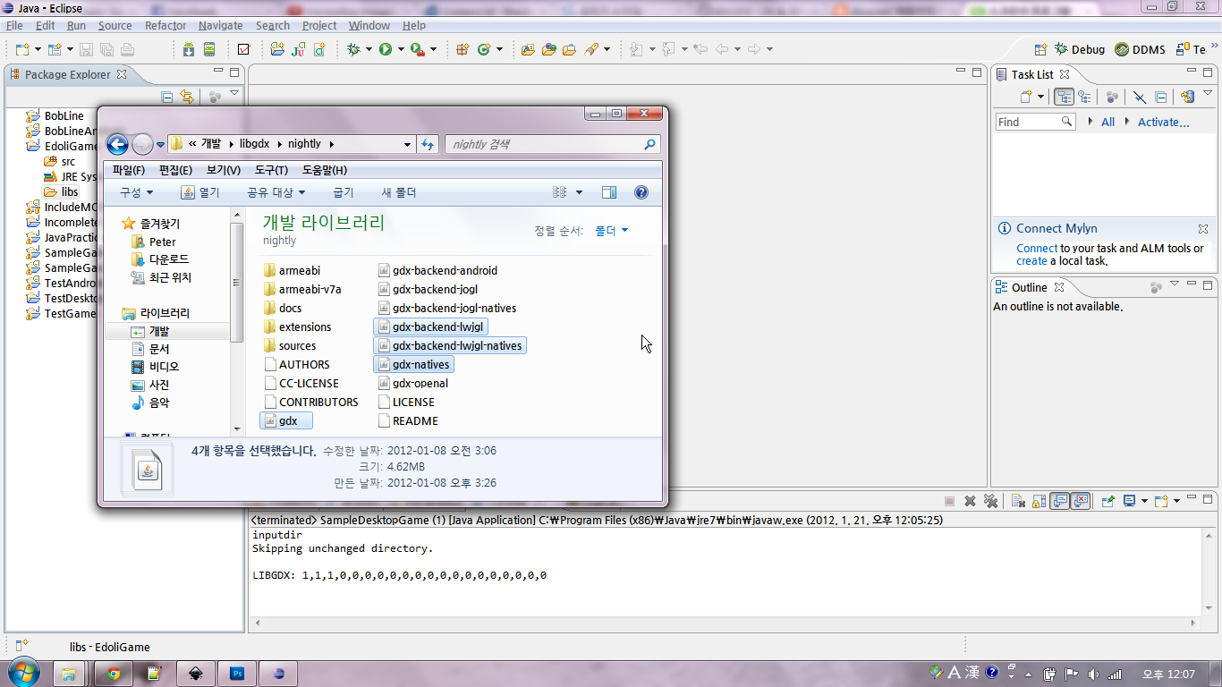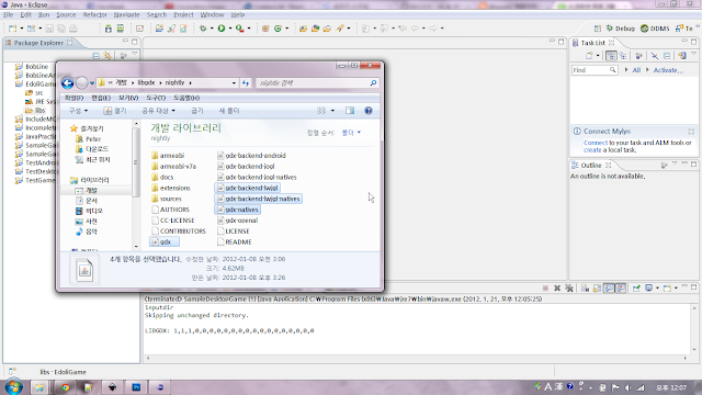 아까 받으셨던 libGDX nightly builds에서 다음과 같은 4개의 파일을 복사해 줍니다.
